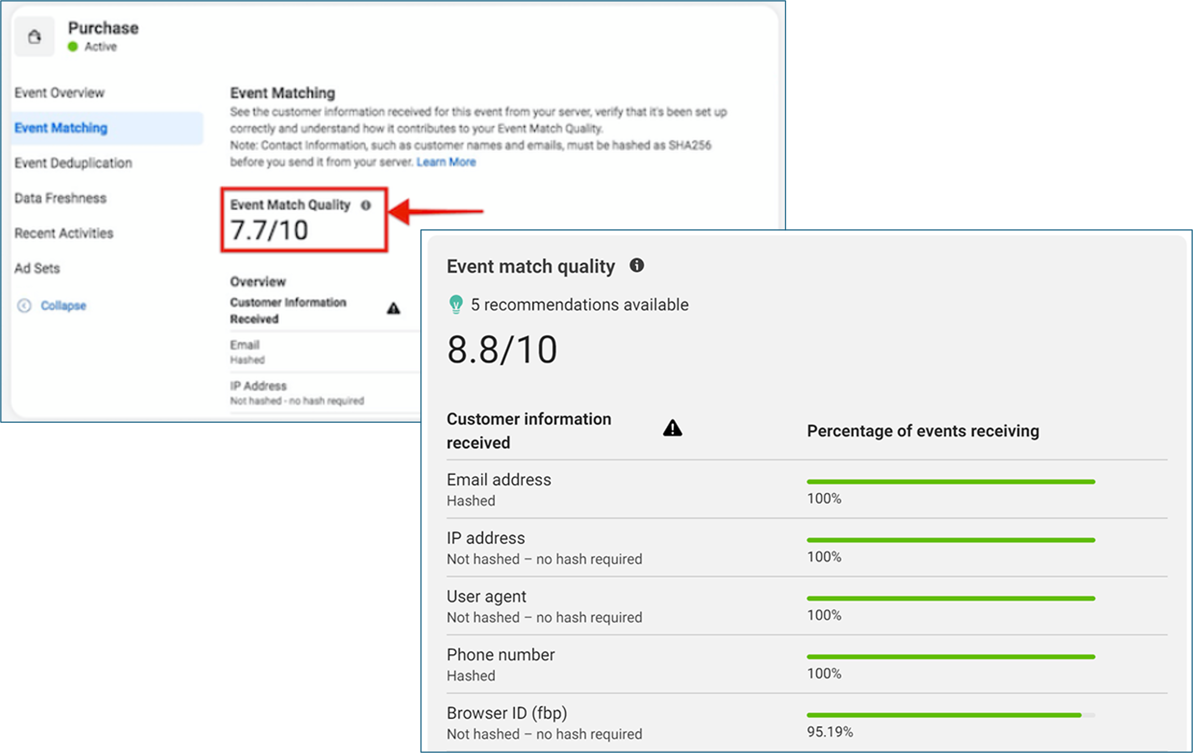 We can enhance your event match quality rate on Facebook's Conversion API, ensuring optimal utilization of your data for improved results.